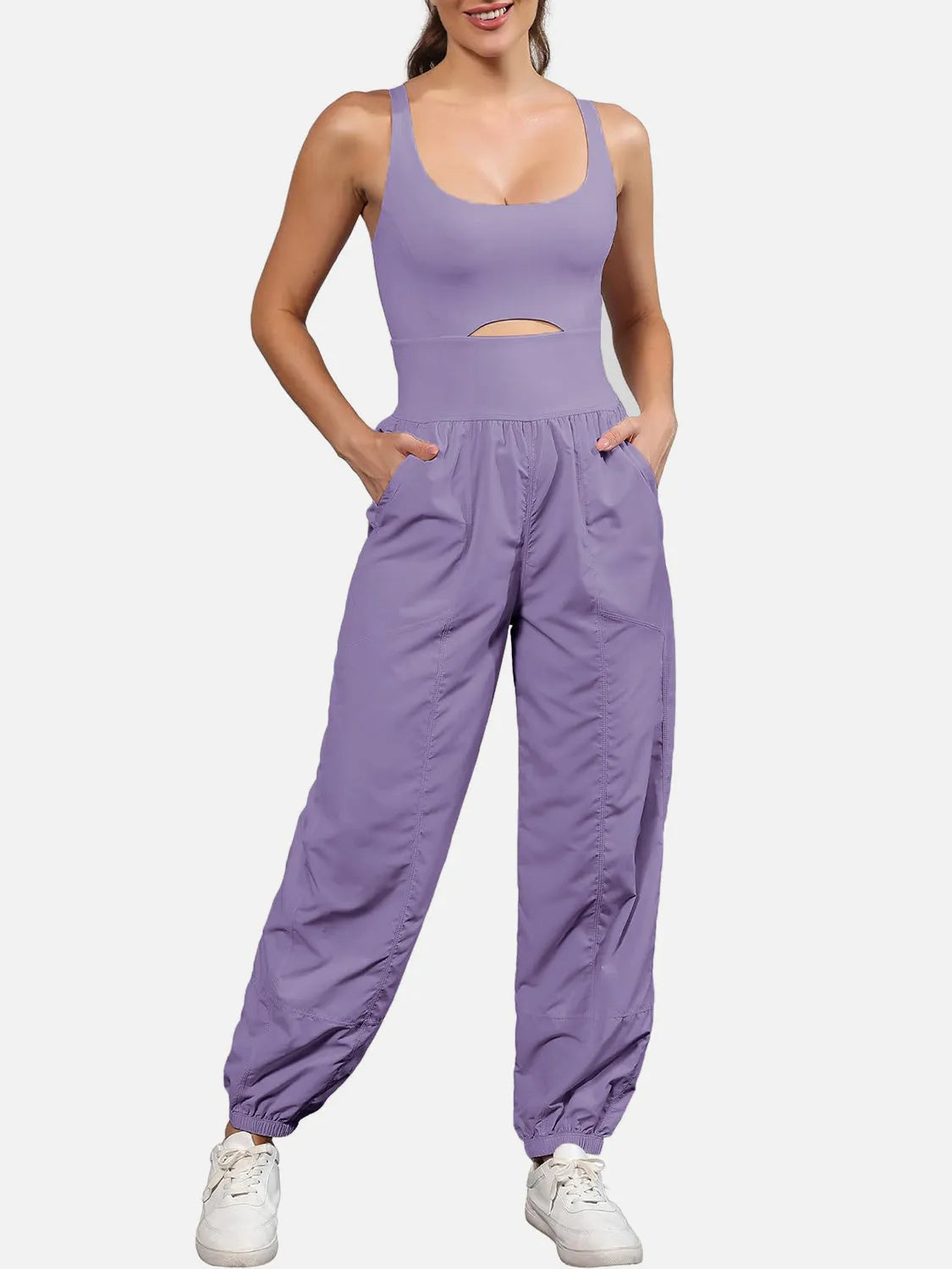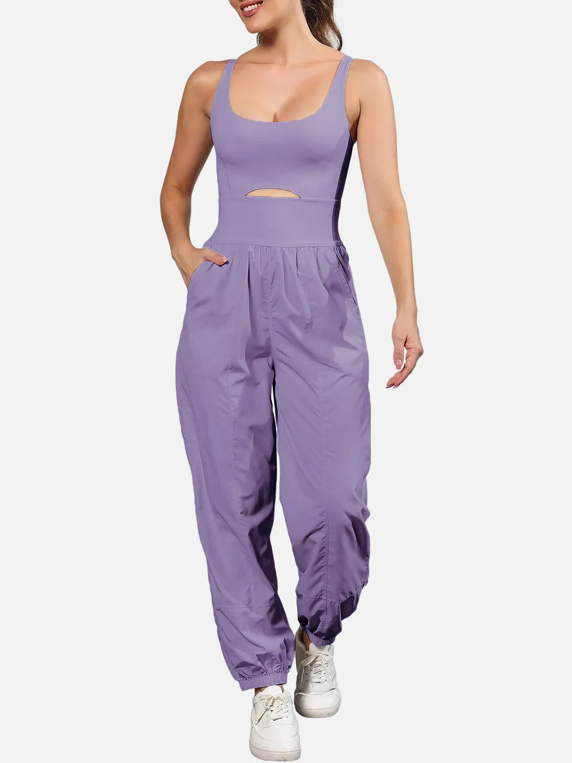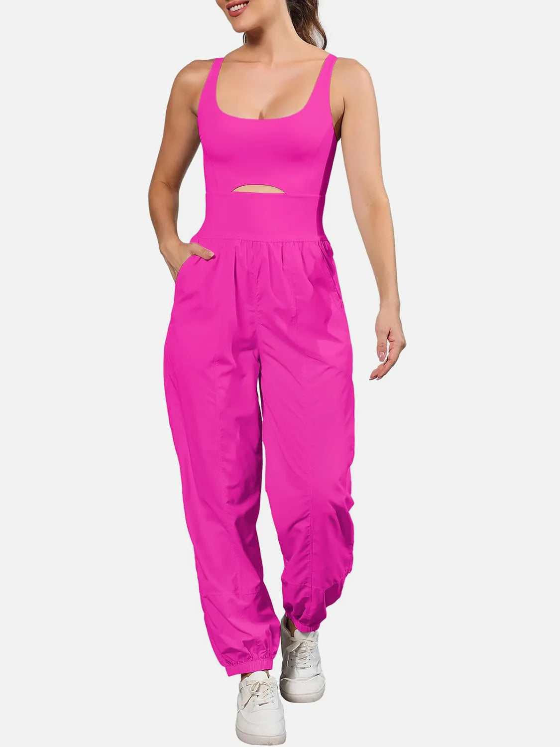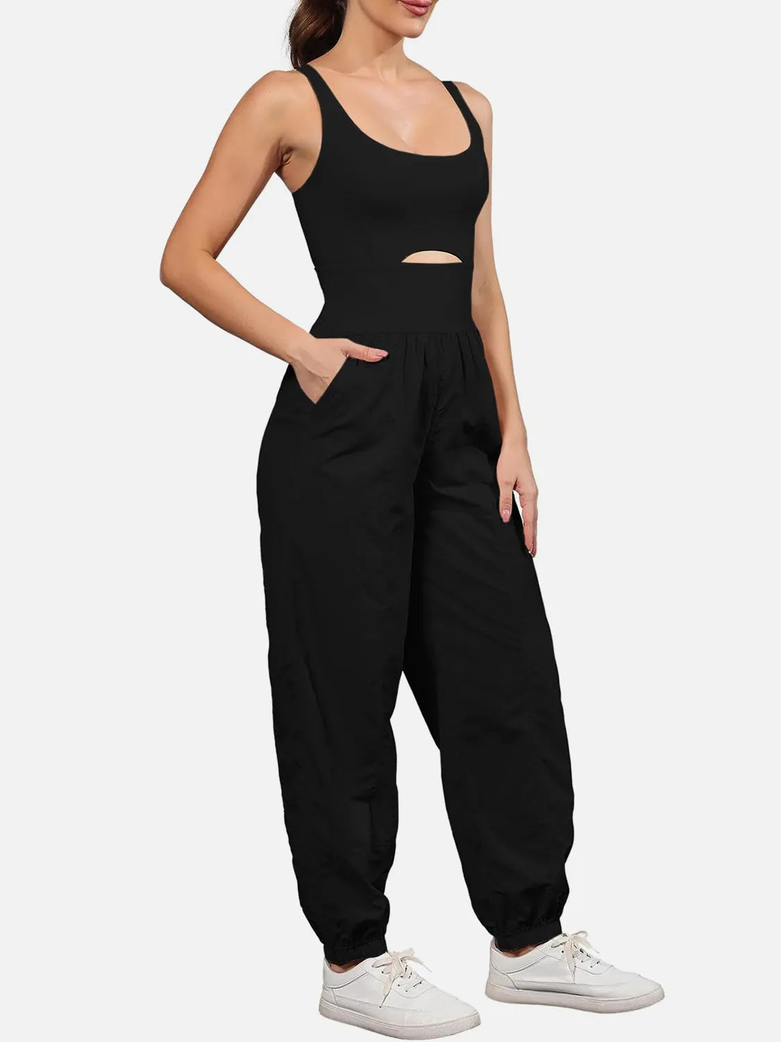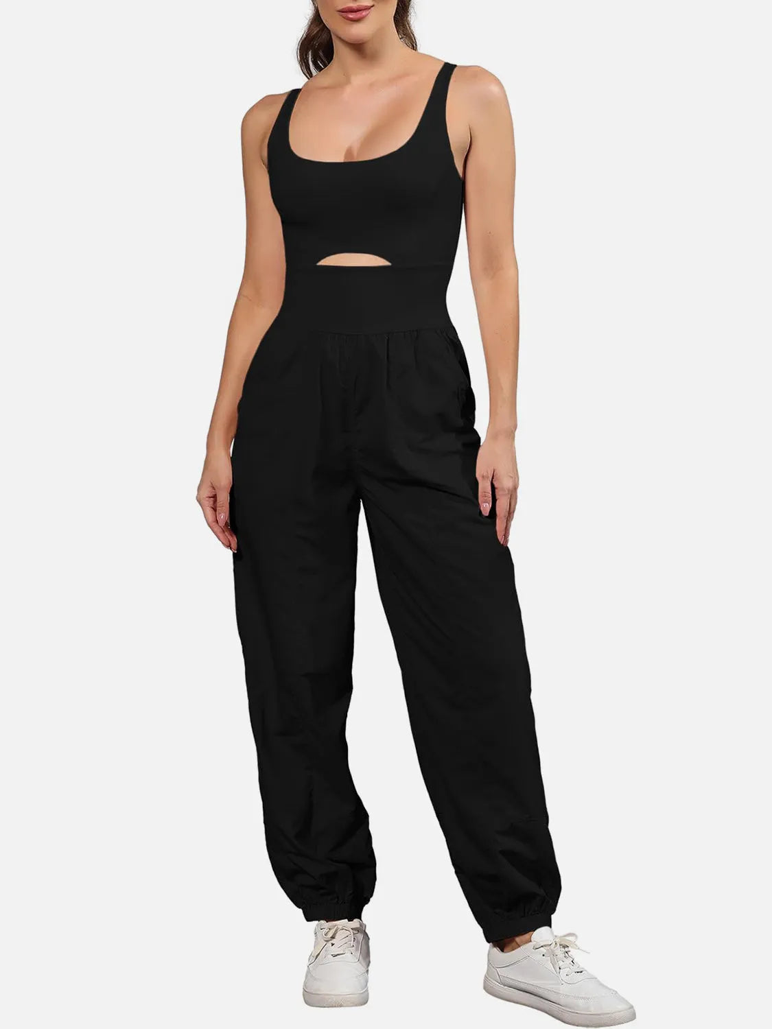Cutout Scoop Neck Wide Strap Jumpsuit