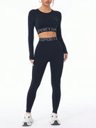 Letter Print Round Neck Long Sleeve Top and Leggings Active Set