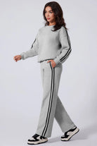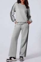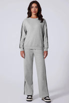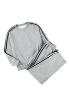 Light Grey Solid Color Side Striped Sweatshirt Active Set