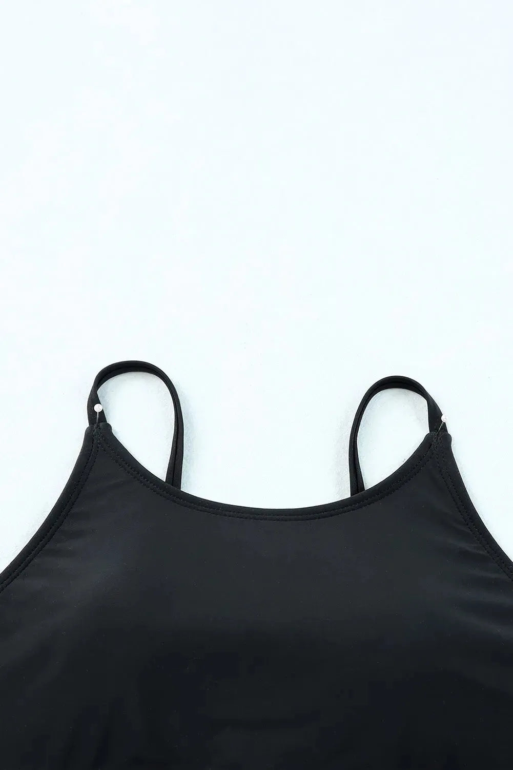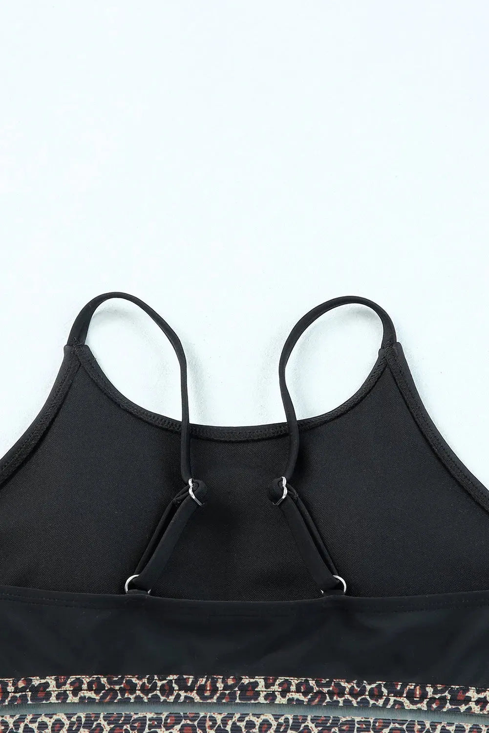 Black Leopard Print Spaghetti Strap Padded Wireless Bikini Set