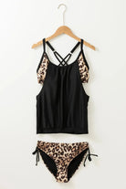 Leopard Grey Layered-Style Striped Tankini with Triangular Briefs
