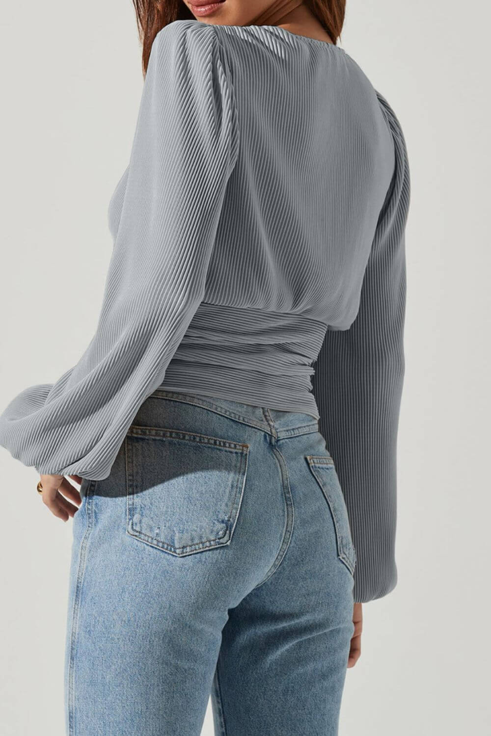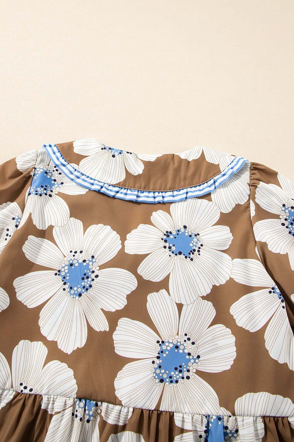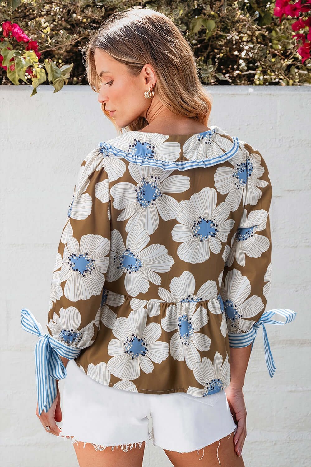 Devine Half Button Flounce Sleeve Peplum Blouse