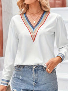 Contrast V-Neck Long Sleeve Blouse