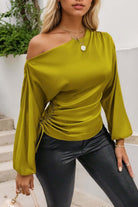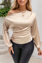 Drawstring One Shoulder Long Sleeve Blouse