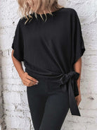 Knotted Round Neck Half Sleeve Blouse