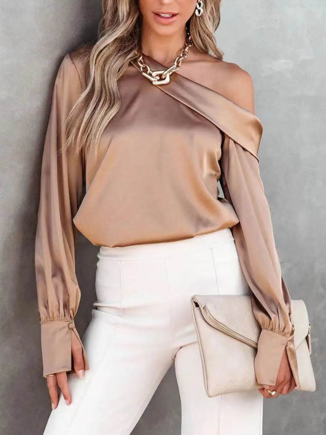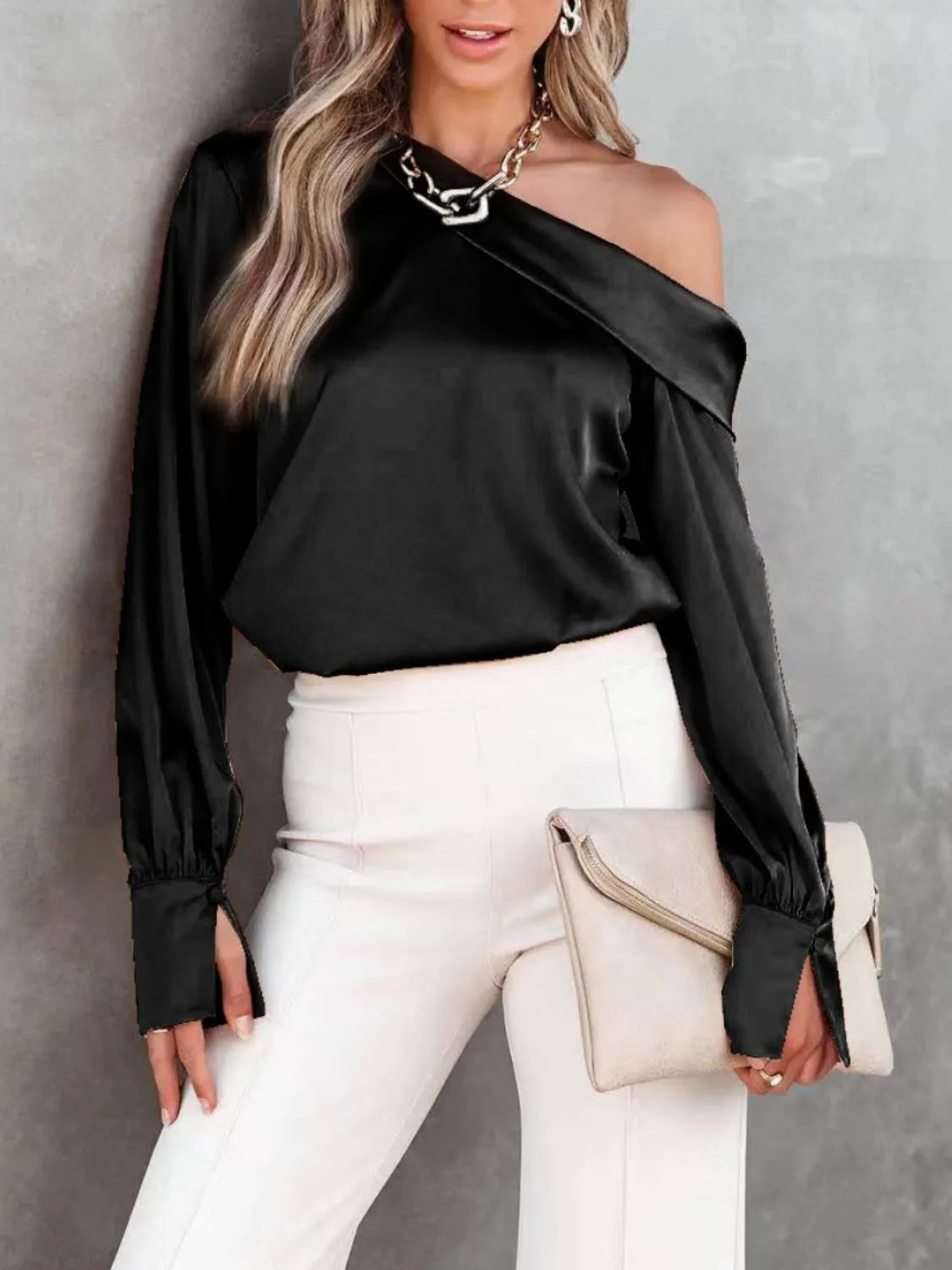 One Shoulder Long Sleeve Blouse