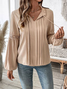 Don't miss out on this must-have addition to your wardrobe. Elevate your style with our Perfee Frill Tie Neck Long Sleeve Blouse today!