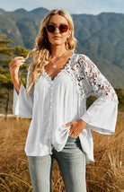 Stylish Deep V-neck Polyester Blouse for Four Seasons