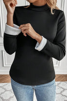 Thermal Lined Mock Neck Long Sleeve Blouse
