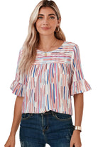 White Abstract Print Ruffle Half Sleeve Blouse