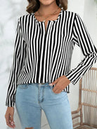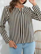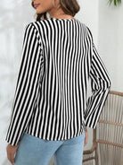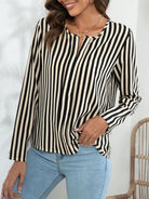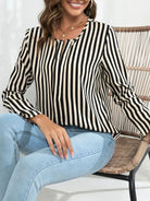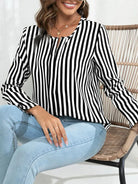 Women's Long Sleeve Round Neck Striped Print Top blouse