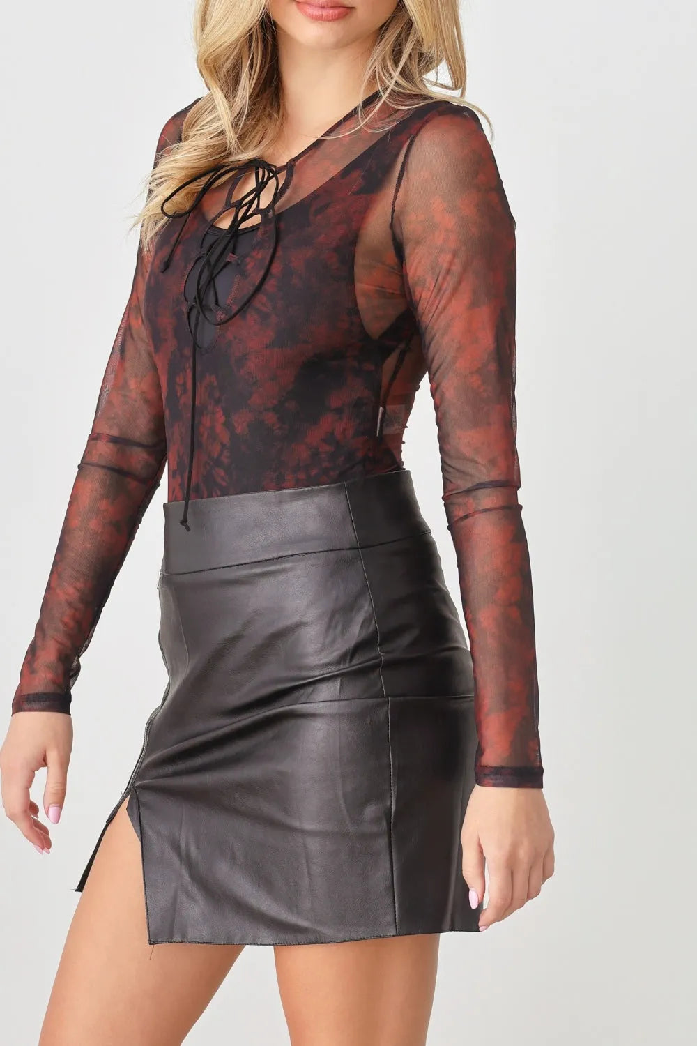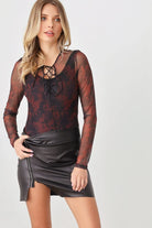 HERA COLLECTION Abstract Mesh Lace-Up Long Sleeve Bodysuit