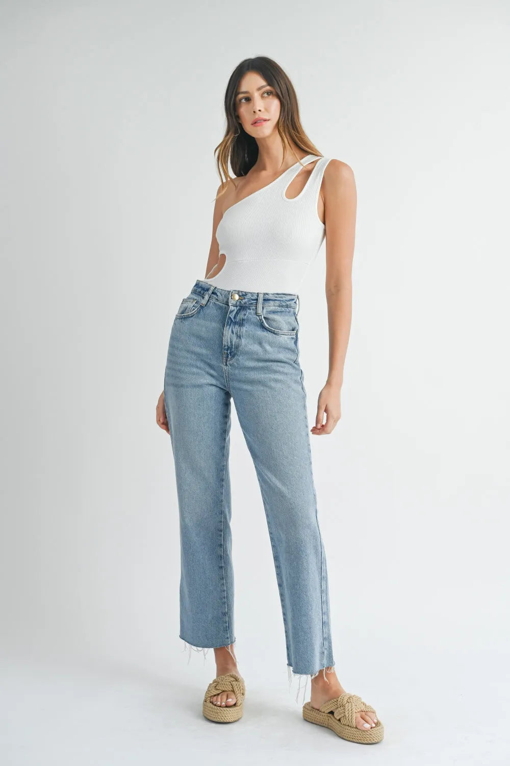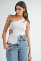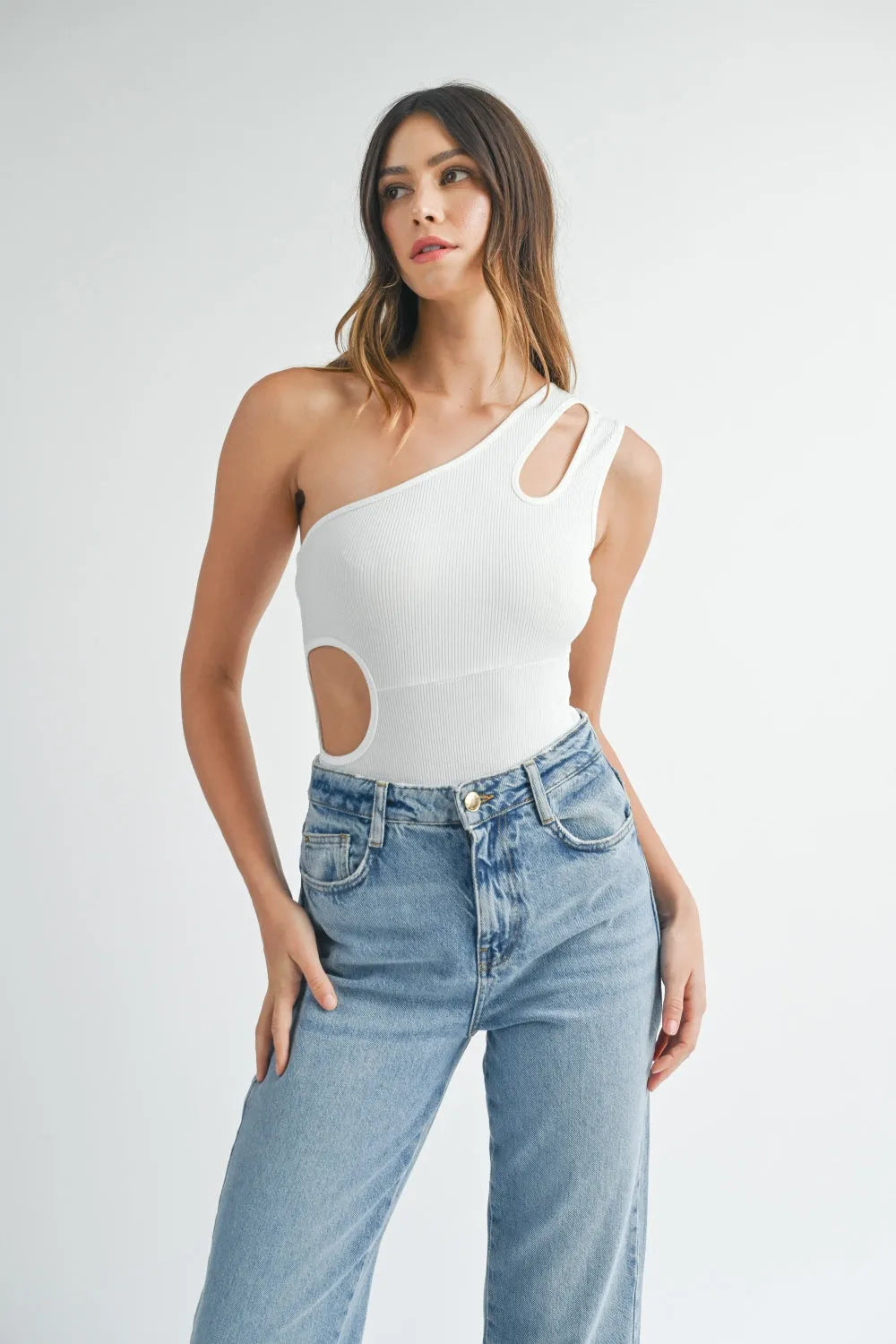 MABLE One Shoulder Ribbed Cutout Detail Bodysuit
