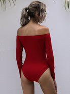Perfee Decorative Button Off-Shoulder Long Sleeve Bodysuit
