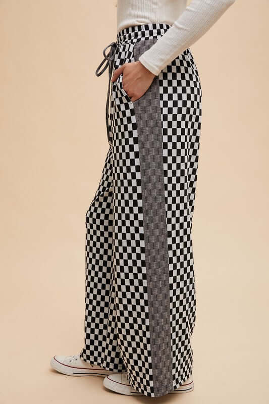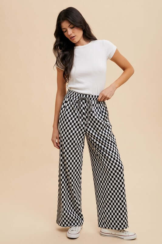 Annie Wear Drawstring Checkered Wide Leg Pants