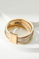 • Add a modern touch to your jewelry collection with this Rhinestone Braided Detail Buckle Bracelet
