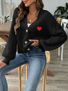 Heart Button Down V-Neck Long Sleeve Cardigan