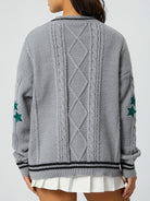 Star Embroidered V-Neck Long Sleeve Cardigan