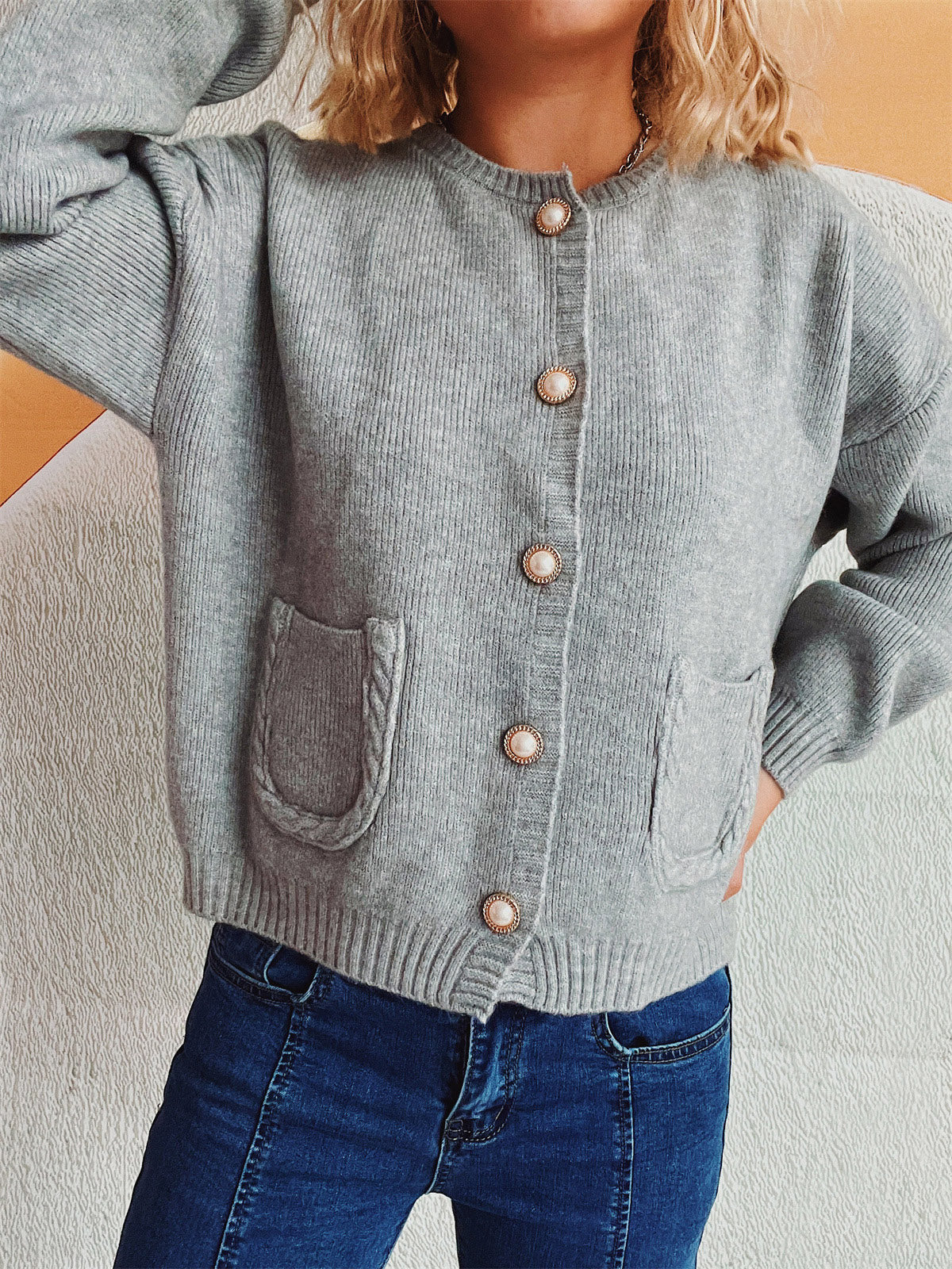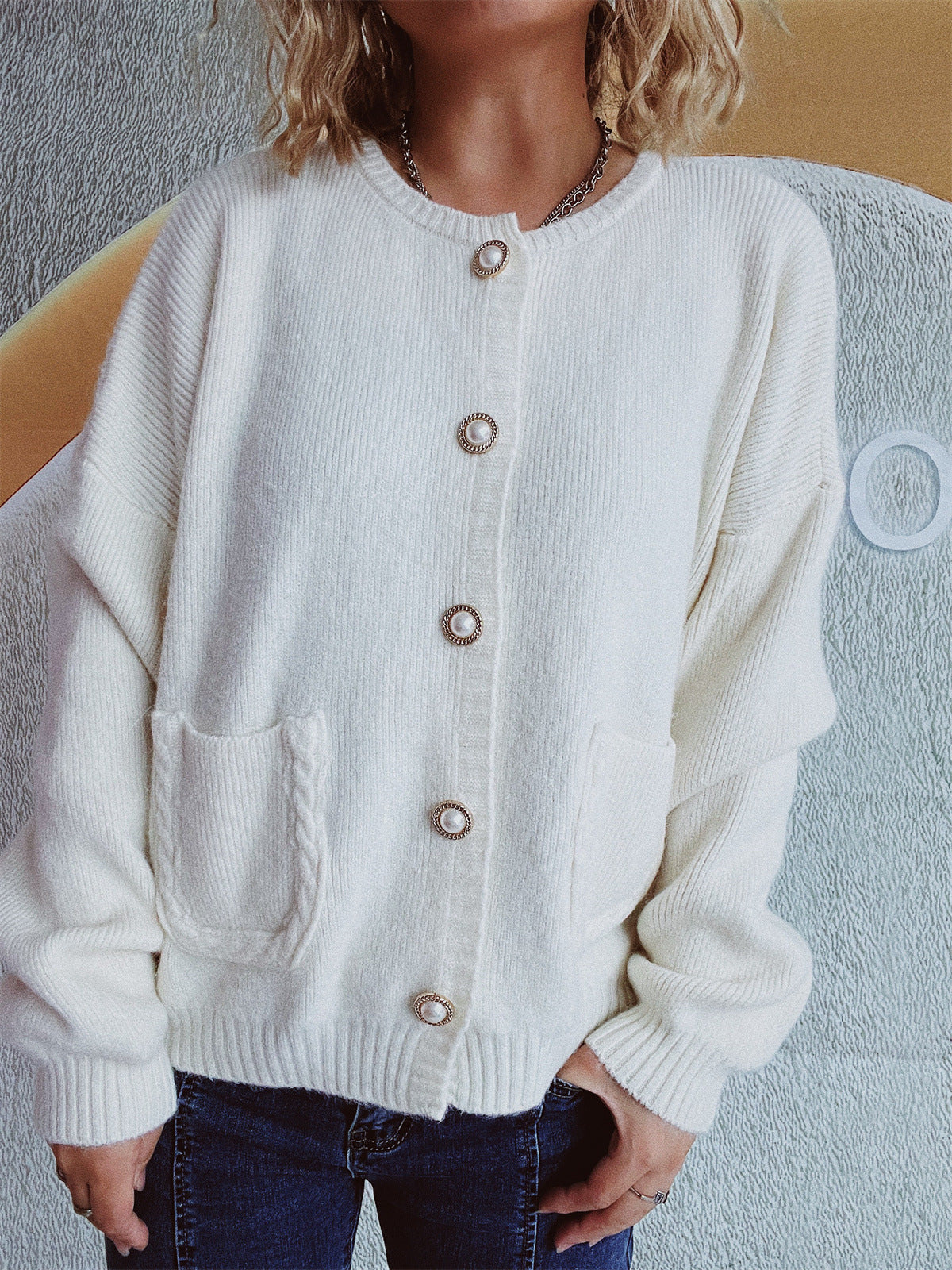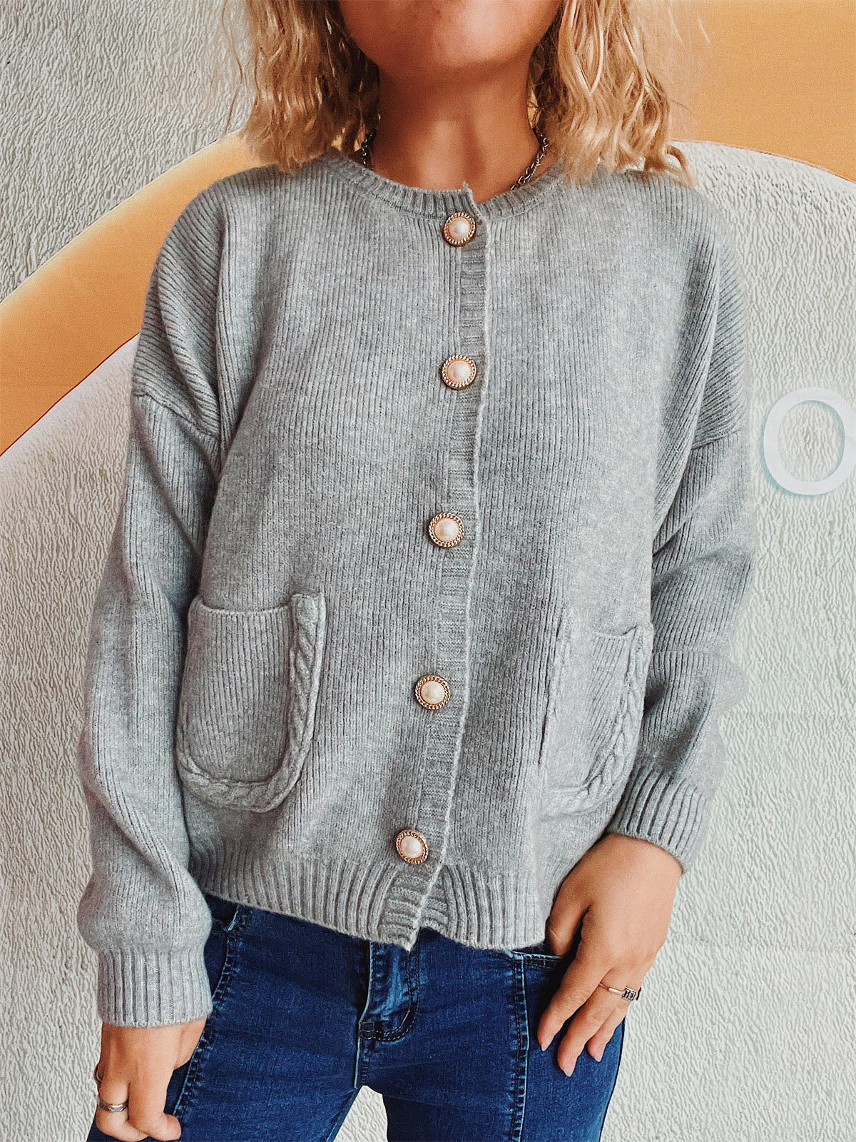 Cable-Knit Round Neck Long Sleeve Cardigan