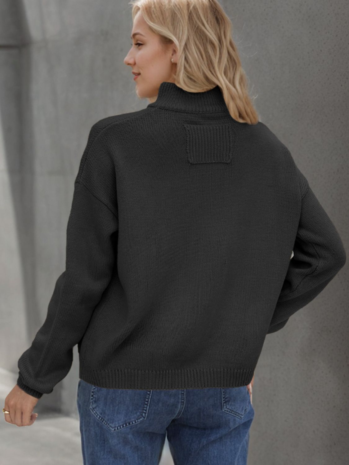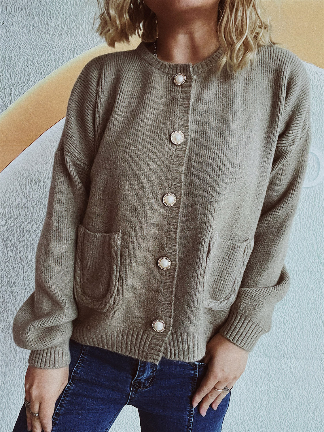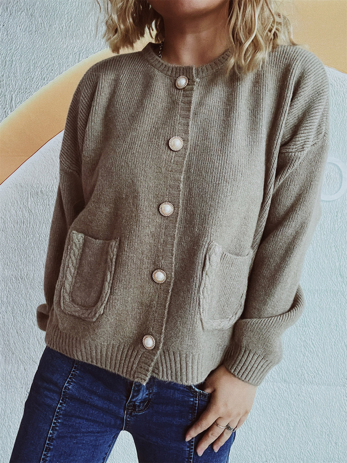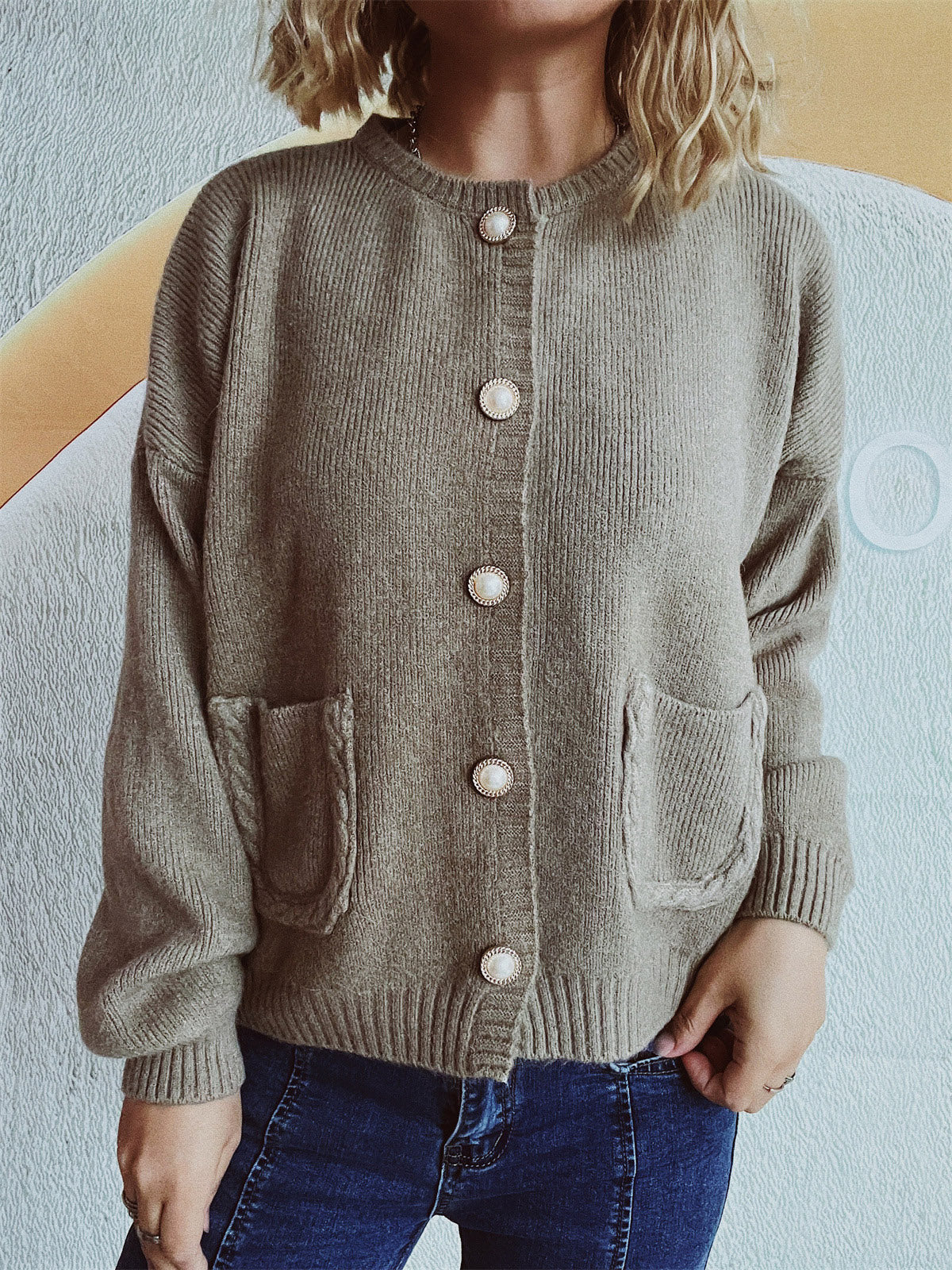Cable-Knit Round Neck Long Sleeve Cardigan