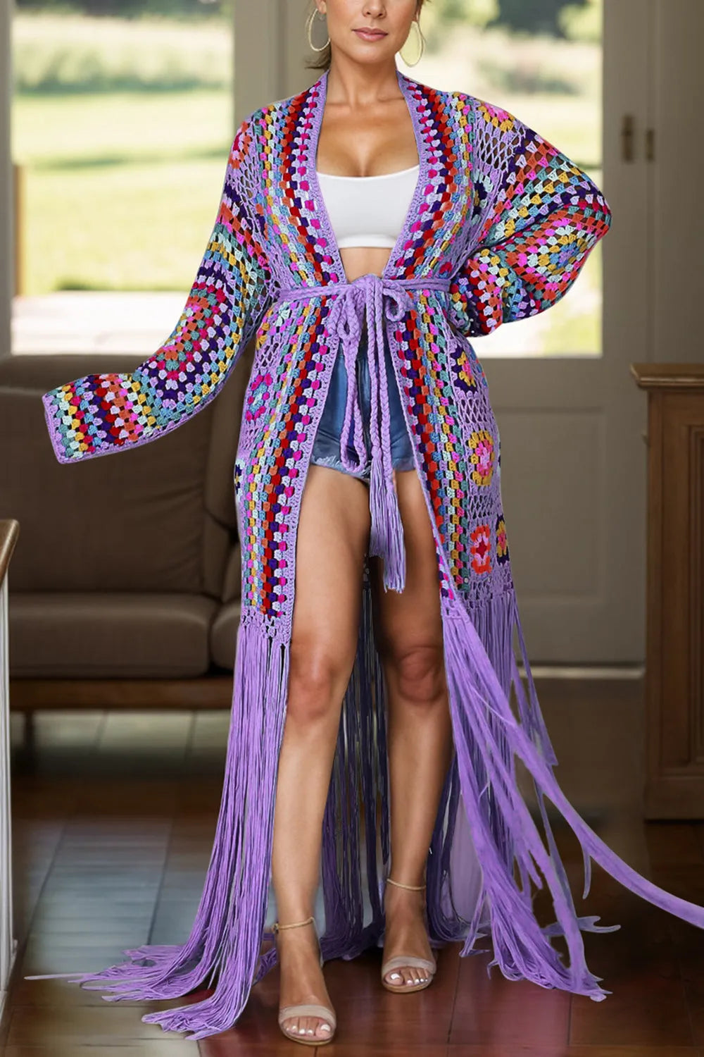 Fringe Tied Long Sleeve Cardigan