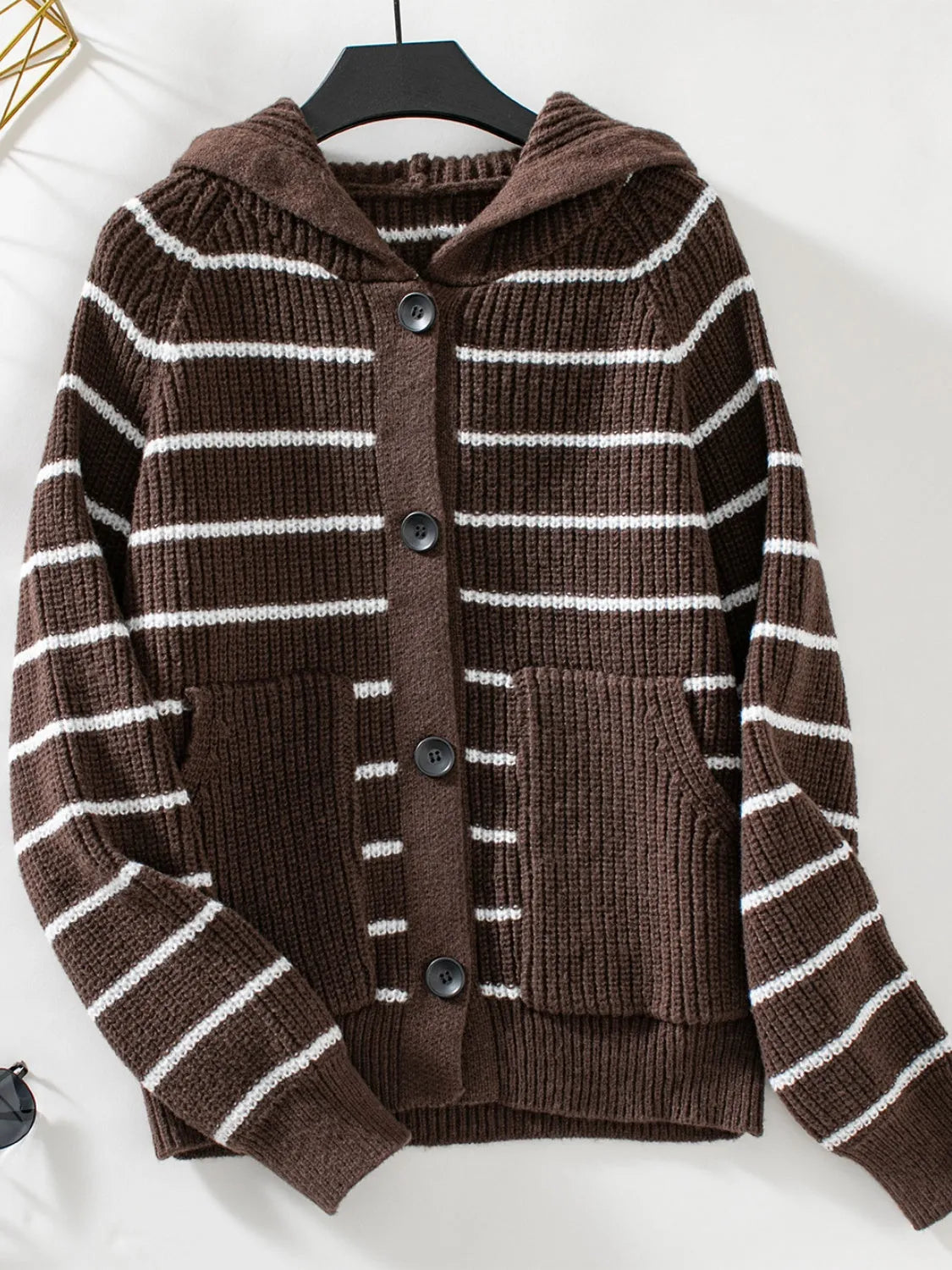 Openwork Button Up Long Sleeve Cardigan