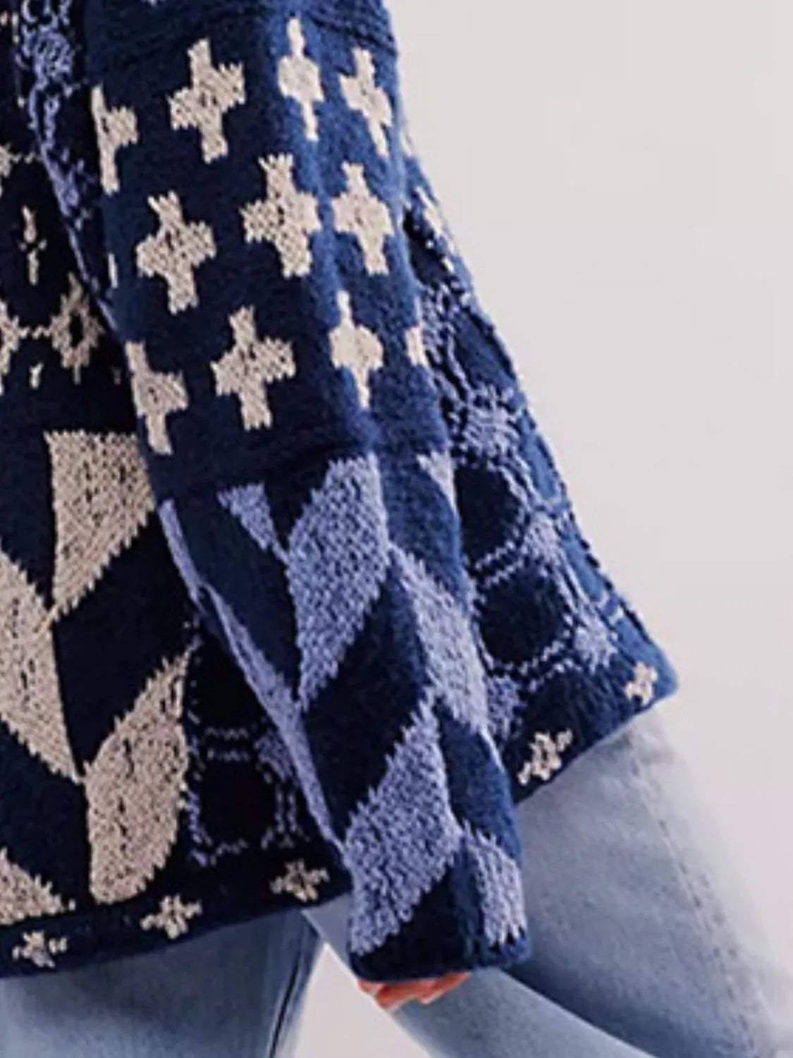Eyelet Roll-Tab Sleeve Cardigan