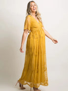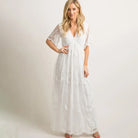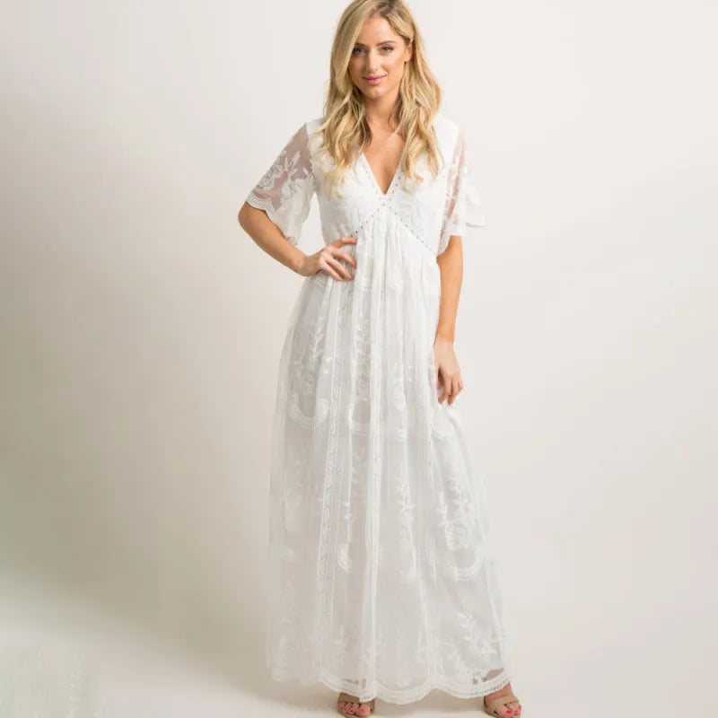 Maternity clothes-Woven short-sleeved V-neck lace long dress