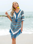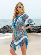 Fringe V-Neck Half Sleeve Cover-Up