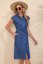Button Down Belted Denim Dress