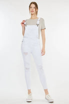 Distressed Skinny Denim Overalls are a trendy and edgy addition to your wardrobe, perfect for creating a unique and fashion-forward look. The distressed detailing gives them a rugged and worn-in vibe, adding a touch of attitude. The skinny fit offers a sleek and modern silhouette that is flattering and versatile. These overalls can be styled in various ways, from casual to more dressed up, depending on the occasion. Pair them with a crop top and sneakers for a cool and effortless ensemble. Overall, Distressed Skinny Denim Overalls are a must-have piece for those who want to make a bold statement with their style.