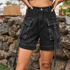 High Waist Denim Cargo Shorts