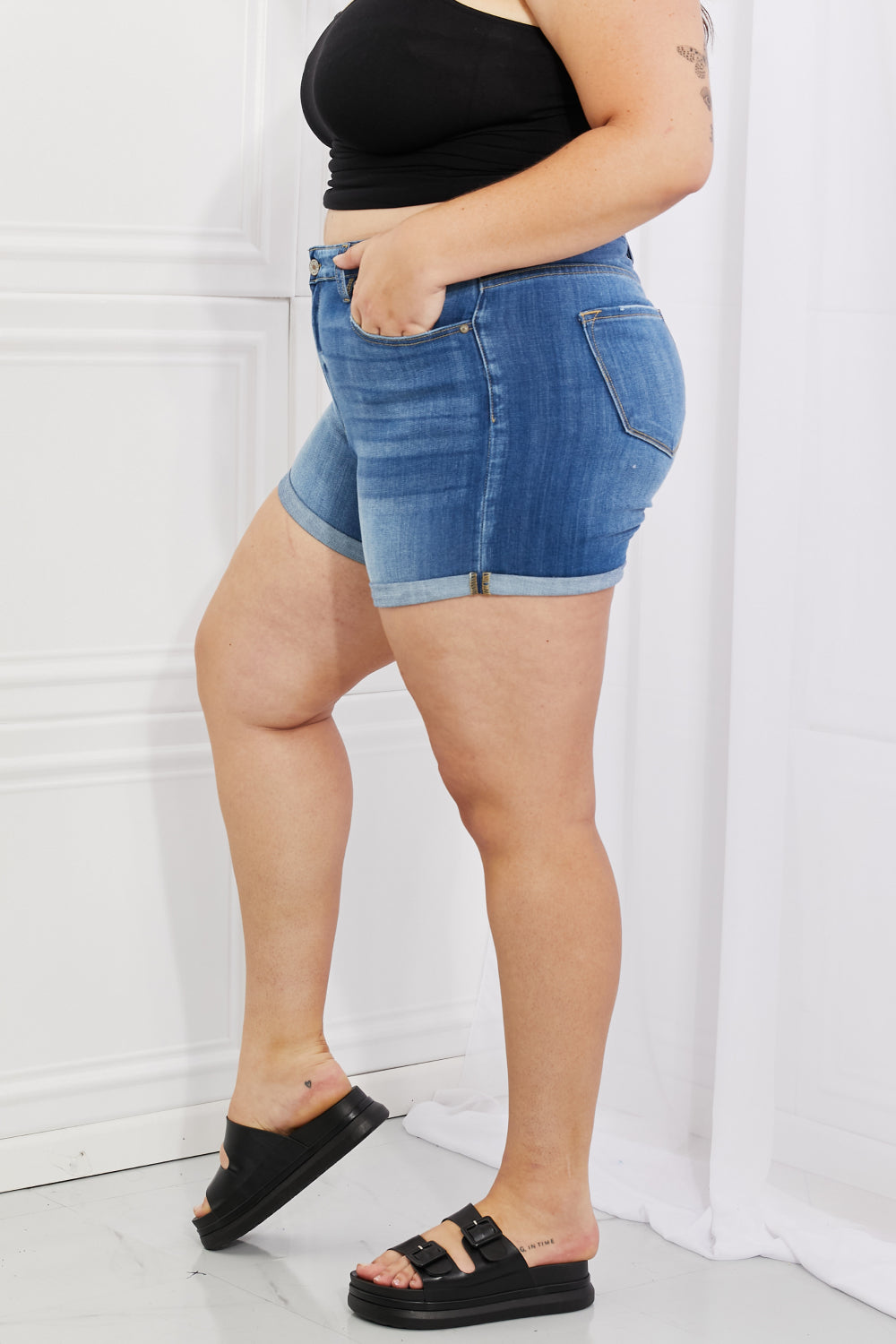 Kancan Full Size High Rise Medium Stone Wash Denim Shorts
