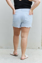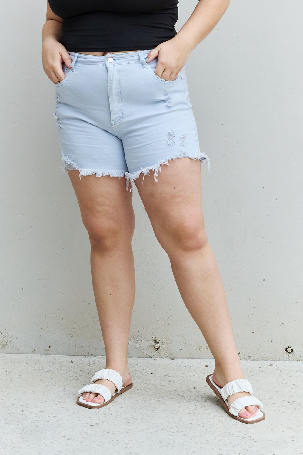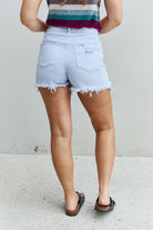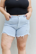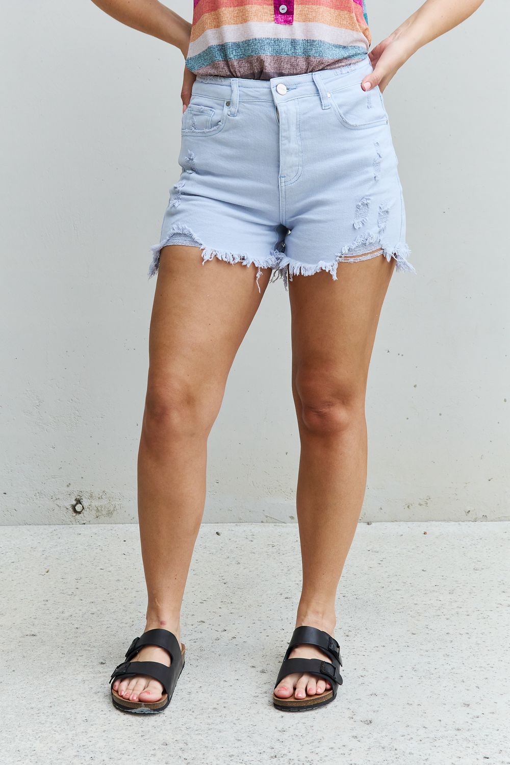 RISEN Katie Full Size High Waisted Distressed Shorts in Ice Blue