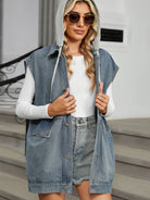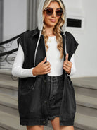 Removable Hood Button Up Cap Sleeve Denim Jacket