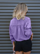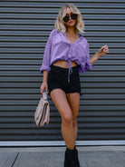 Drawstring Pocketed Button Up Denim Top