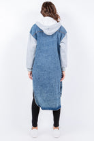American Bazi Contrast Longline Hooded Denim Jacket