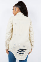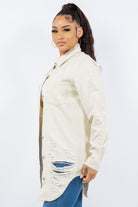 American Bazi Distressed Button Up Long Sleeve Denim Jacket