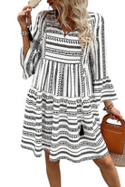 Black Striped Fringe Tie Neck Bell Sleeve V Neck Mini Dress