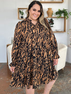 Double Take Full Size Printed Ruffle Hem Long Sleeve Dress