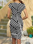 FAM-FAM Tied Striped Round Neck Cap Sleeve Dress