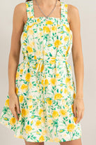 Elevate your style with this charming mini dress featuring a beautiful floral print and trendy details. The square neck and knot-detailed shoulder straps add a modern touch, while the delicate waist tie cinches in the waist for a flattering silhouette. Perfect for a variety of occasions, this dress is both stylish and versatile. Whether you're heading out for brunch with friends or attending a summer party, this mini dress is sure to make a statement. Update your wardrobe with this chic and feminine piece and step out in style wherever you go.