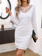 Lace Detail Round Neck Long Sleeve Mini Dress