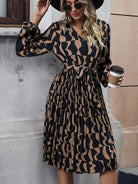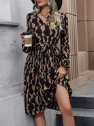 New Elegant Printed Long Sleeve Dress Mid-Length