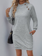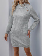 Perfee Texture Mock Neck Long Sleeve Mini Dress