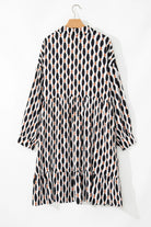 Plus Size Printed Johnny Collar Long Sleeve Dress