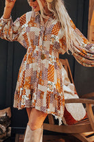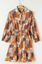 Printed Collared Neck Three-Quarter Sleeve Mini Shirt Dress