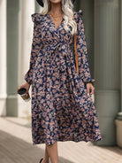 Printed Surplice Long Sleeve Midi Dress