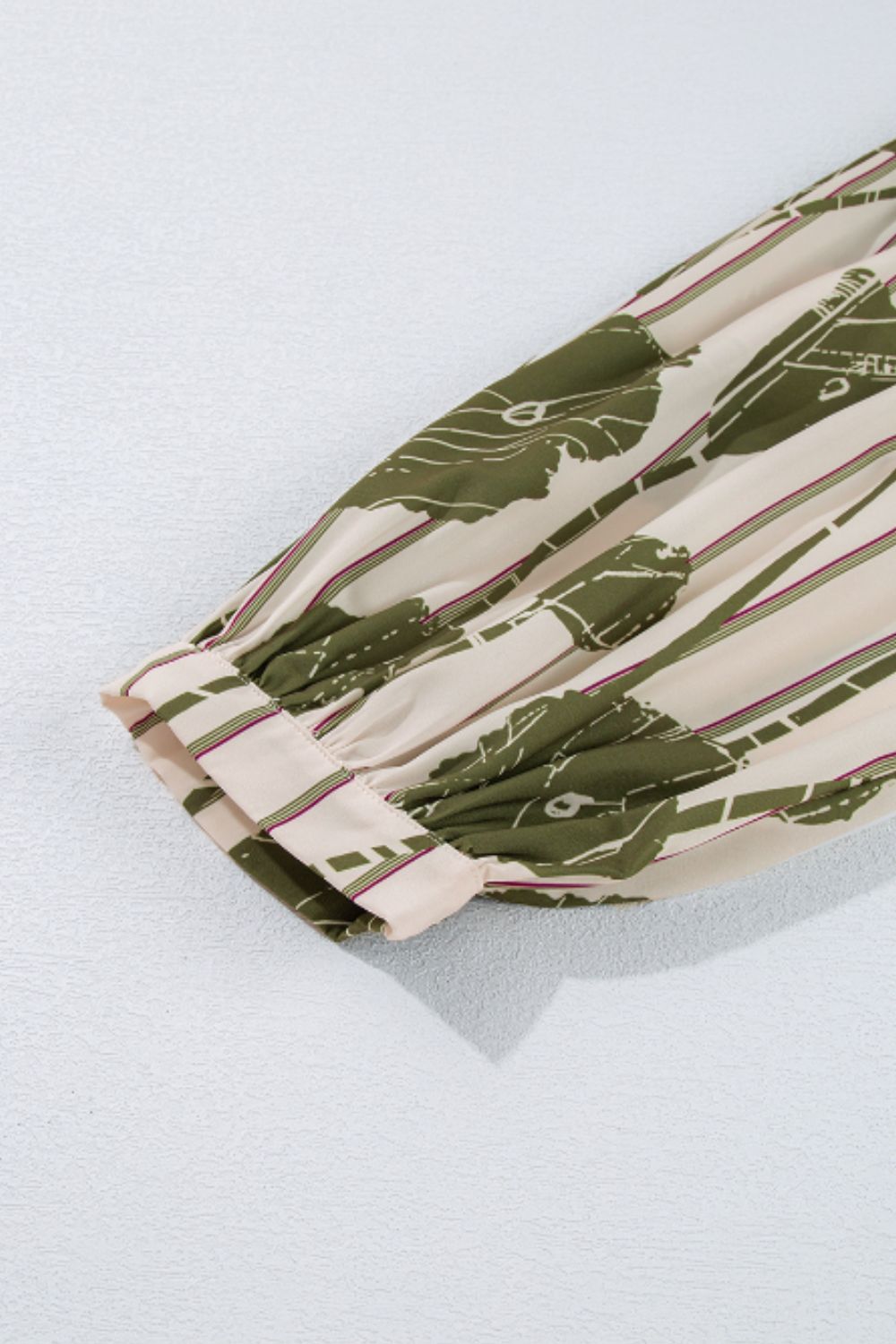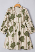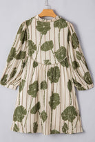 Printed Tie Neck Three-Quarter Sleeve Mini Dress