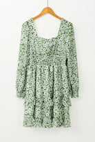 Ruffle Hem Floral Square Neck Long Sleeve Dress